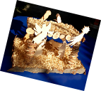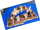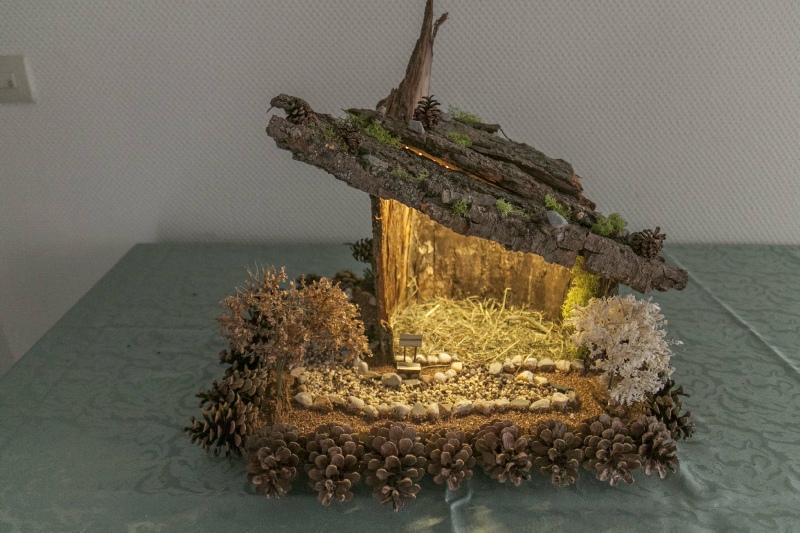 Handgefertigte Weihnachtskrippen überwiegend aus Baumrinde und anderen Materialien(z. B. Gips) gefertigt und mit LED Beleuchtung ausgestattet.