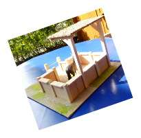 aus Kiefernholzleisten und weiteren Materialien gefertigt (siehe Bilder)